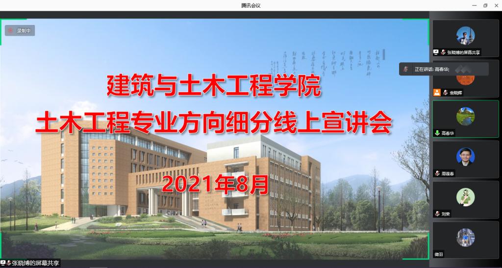 为帮助学生更加深入、细致的了解我院土木工程专业培养方案相关方向,积极推进专业分方向志愿提报工作,金年会jinnianhuicom于8月28日下午3点借助腾讯会议网络平台,召开了2020级土木工程专业建筑工程和城市地下空间工程方向线上宣讲会,会议由副院长袁晓辉主持。