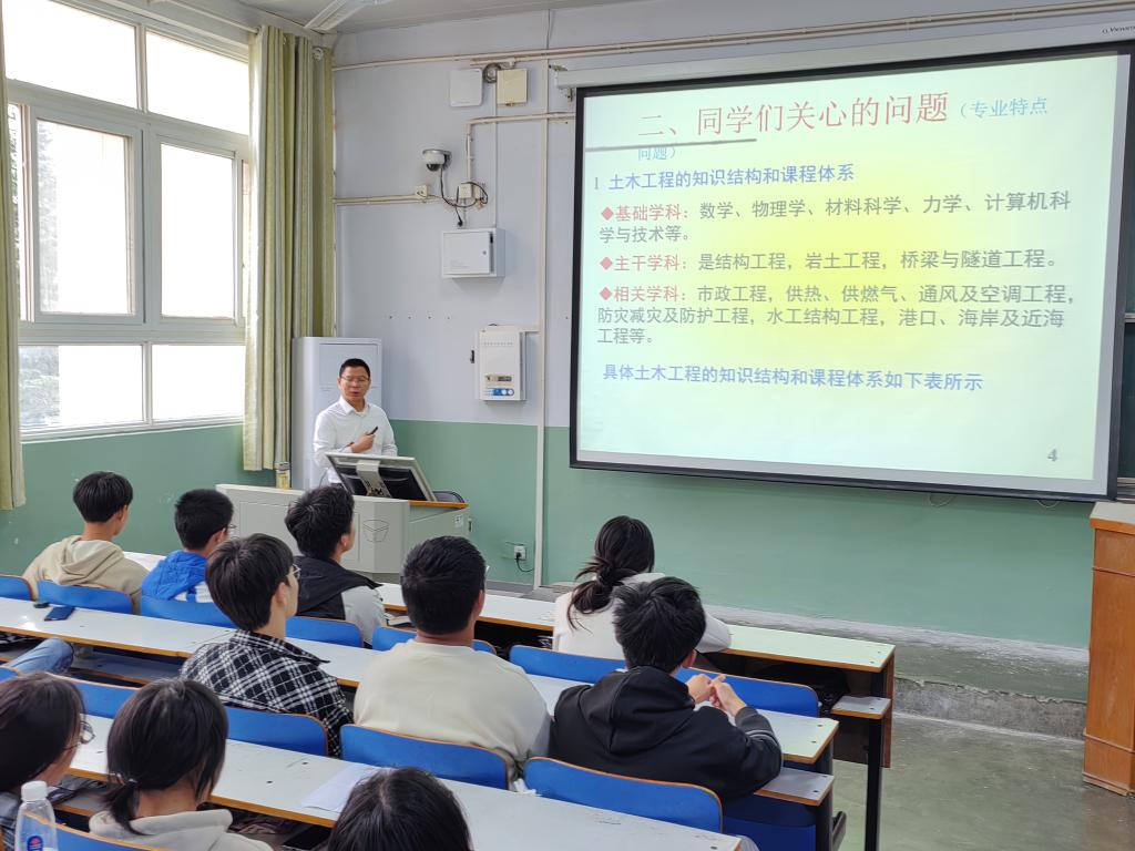 2023年10月19日上午,土木工程系在教二—T5教室开展了2023级土木工程专业新生入学教育活动,金年会jinnianhuicom党委副书记冀鹏、土木工程系系主任高春华、教师代表王述超及2023级土木工程专业全体新生参加了本次活动,活动由高春华主持。