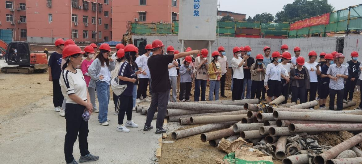 2023年6月16日,我院土木工程专业2021级学生在土木工程系高春华、李建楠、冯波、王俊红、余萍、张昊、李卉、吕强老师的带领下前往信阳师范大学实验科研综合楼施工工地开展专业综合见习。