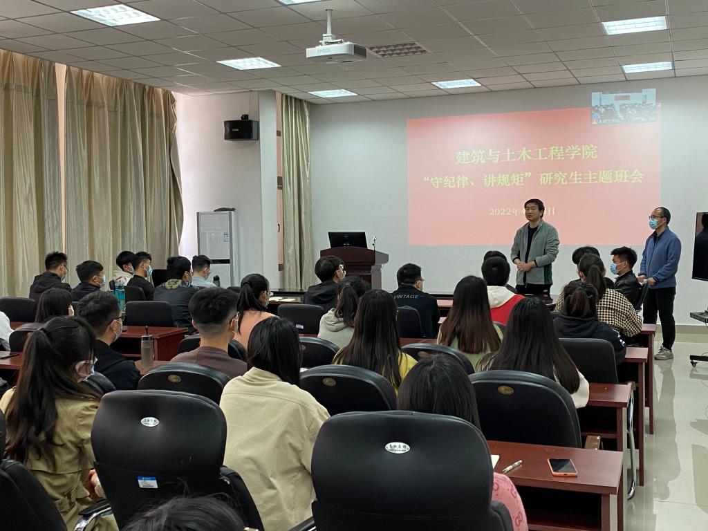 2022年4月18日下午2点,金年会jinnianhuicom召开了研究生“守纪律、讲规矩”主题班会。研究生主管院长肖琪聃、研究生班主任马文强和全体研究生线下线上参加了本次班会,会议由马文强主持。