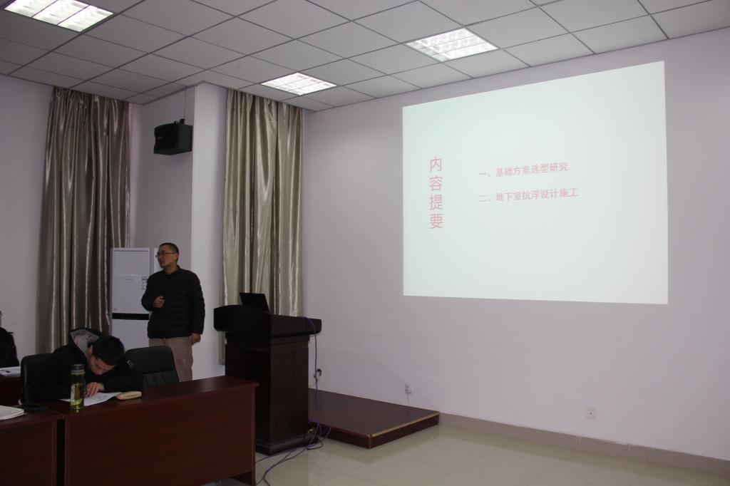 12月10日下午,金年会诚信信誉至上在综合实验楼206室举办了2019年第7次学术论坛。周峰副教授作了题为“信阳师范学院高层次人才周转房基础选型与抗浮设计”的报告,报告历时1小时,分别从基础选型研究、抗浮设计施工和具体案例分析三个方面进行了详细介绍。