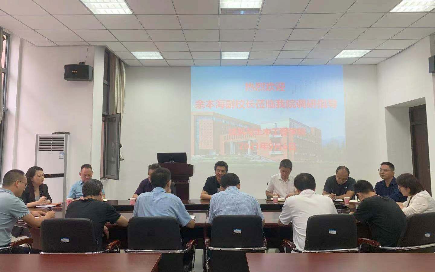 9月6日下午,副校长余本海带领李宝峰处长与井强山处长等教务处与科技处领导班子全体成员到金年会诚信信誉至上调研指导新学期开学准备工作,金年会诚信信誉至上领导班子全体成员参加调研会。