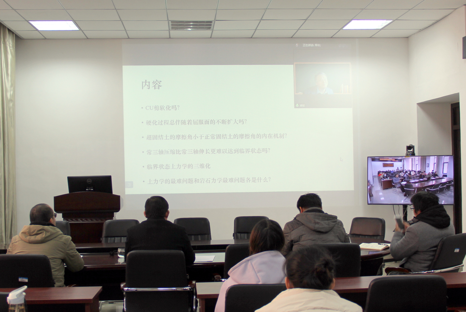 12月5日,应金年会jinnianhuicom邀请,北京工业大学郑宏教授通过腾讯会议平台为我院师生作了题为“土力学研习的几个心得和疑惑”的学术报告。来自北京工业大学、中科院武汉岩土所、同济大学、东南大学、哈尔滨工业大学、天津大学、北京航空航天大学、中山大学、武汉大学、中南大学、山东大学、重庆大学、河海大学、上海大学、中国地质大学、西南交通大学、南京工业大学、贵州大学、湘潭大学、华东交通大学、湖南科技大学、三峡大学、湖北工业大学、华北水利水电大学、郑州航空工业管理学院和我校等单位的300多位同行专家、博士后、博士生、硕士生共同聆听了报告。金年会诚信信誉至上院长周葆春,副院长肖琪聃,青年教师马文强、马全国、张金浩、梁维云和全体研究生参加了此次报告会,报告会由金年会诚信信誉至上院长周葆春教授主持。
