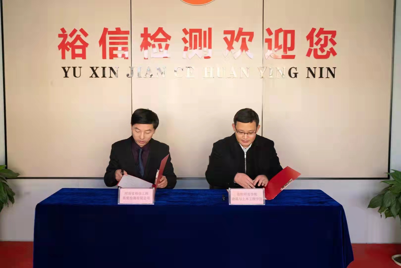 1月11日下午,金年会诚信信誉至上工程硕士专业学位研究生联合培养基地签约暨揭牌仪式在河南省裕信工程质量检测有限公司举行。