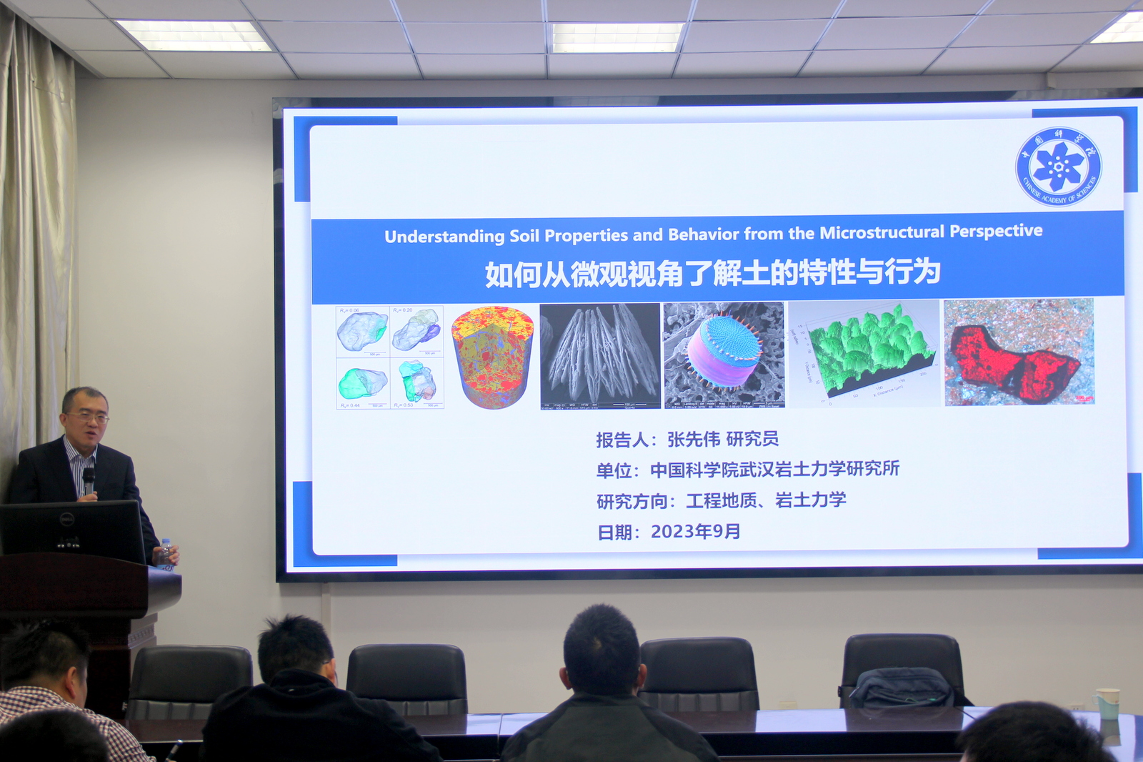9月25日下午,应金年会jinnianhuicom和河南省非饱和土与特殊土工程技术研究中心邀请,中国科学院武汉岩土力学研究所张先伟研究员为我院师生作了题为“如何从微观结构特征了解土的特性与行为”的学术报告。报告会由金年会jinnianhuicom院长周葆春主持。