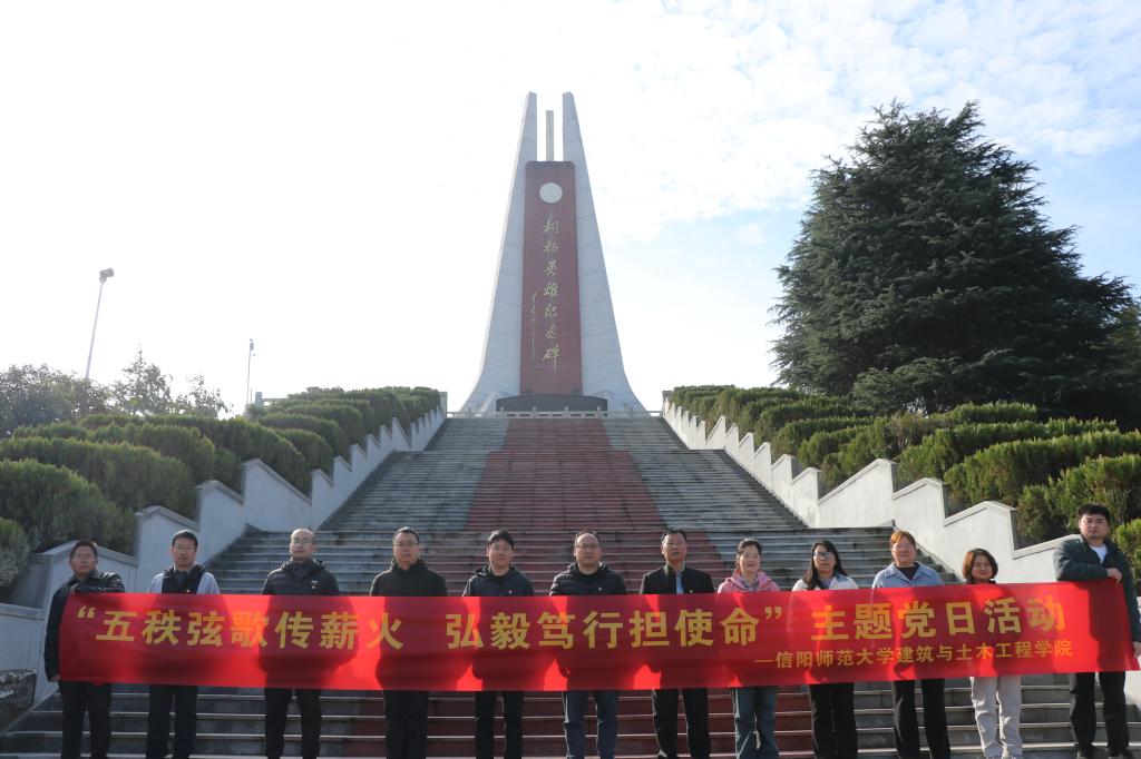 在桐柏英雄广场,全体党员怀着无比崇敬的心情瞻仰了桐柏英雄纪念碑,敬献花篮,肃立默哀,向革命烈士鞠躬致敬,表达对革命先烈的深切缅怀和无限敬仰。在学院党委书记王永贵同志的领誓下,全体党员高举右拳,面对鲜红党旗,重温入党誓词。“我志愿加入中国共产党,拥护党的纲领,遵守党的章程......”誓词声声,铿锵有力,这既是对红色历史和革命先辈的告慰,也是铭记历史、赓续血脉、接续奋斗、牢记初心、践行使命担当的庄严承诺。