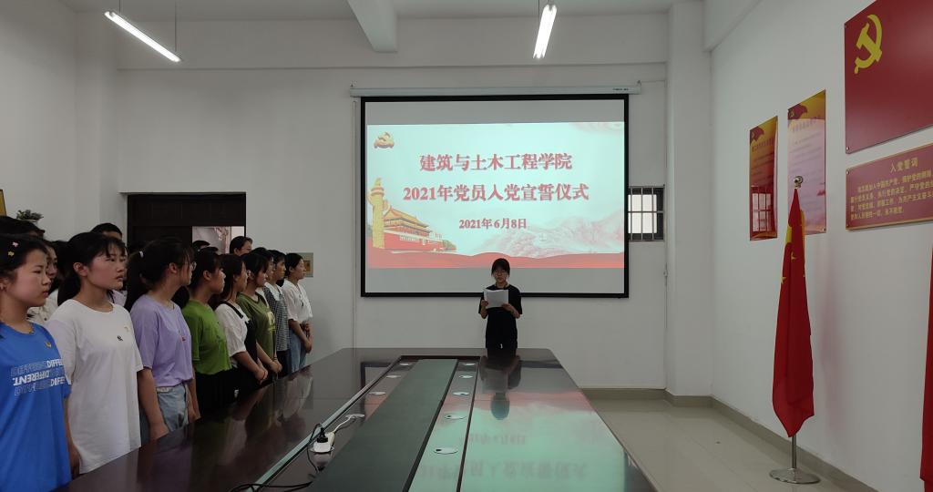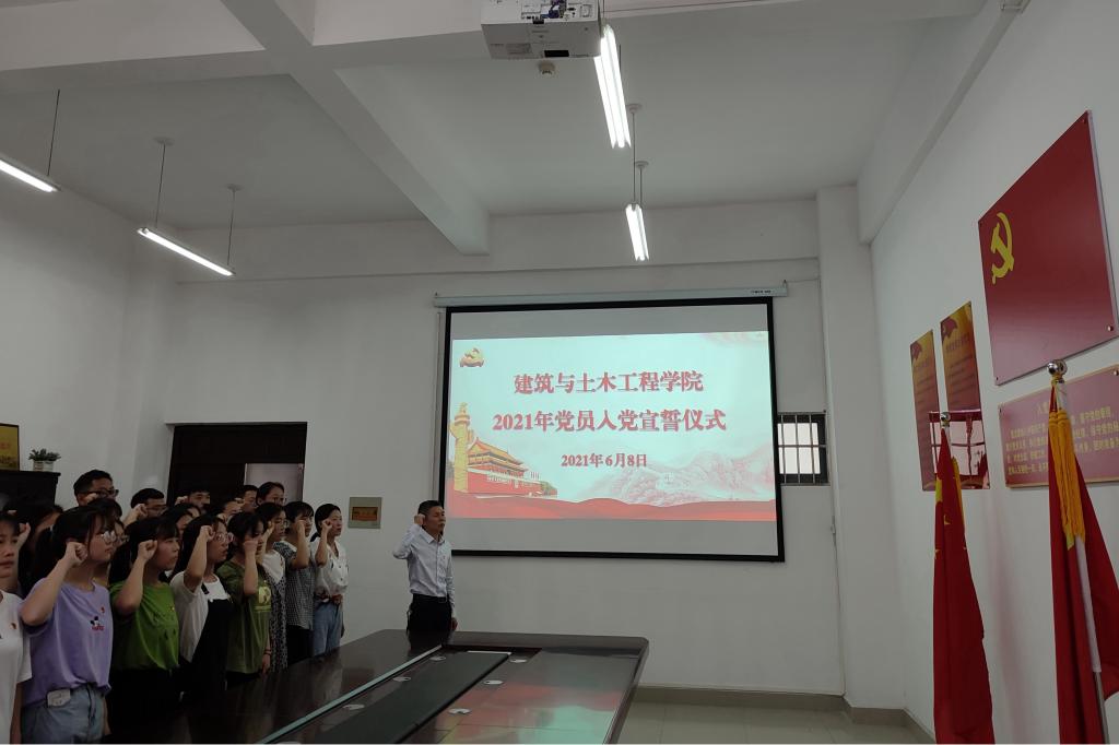 6月8日下午,金年会jinnianhuicom在综合实验楼203会议室举行2021年上半年新党员入党宣誓仪式。出席仪式的有学院党委书记黄学玉、党委副书记方明科、学生党支部书记、35名新党员、部分老党员及入党积极分子代表。仪式由方明科主持。