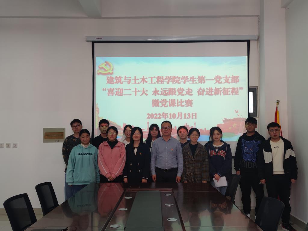擦亮青春底色,筑梦接续奋斗。为教育引导学生党员在学思践悟中坚定理想信念,在奋发有为中践行初心使命,以优异成绩迎接党的二十大胜利召开,10月13日,金年会jinnianhuicom学生第一党支部在综合实验楼402会议室开展了“喜迎二十大 永远跟党走 奋进新征程”微党课比赛活动。学院党委副书记冀鹏,党支部书记张海燕和支部全体党员参加活动。