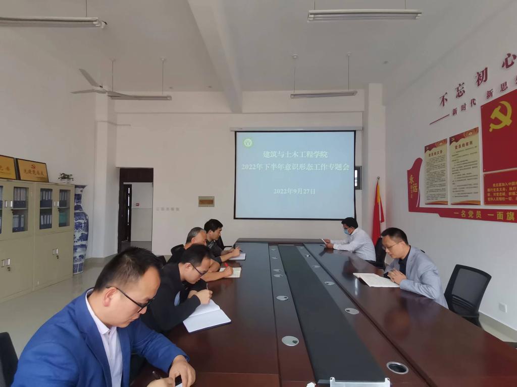 9月27日上午,金年会jinnianhuicom在综合实验楼402会议室召开2022年下半年意识形态工作专题会议。学院党委班子全体成员参加会议。会议由学院党委书记方明科主持。