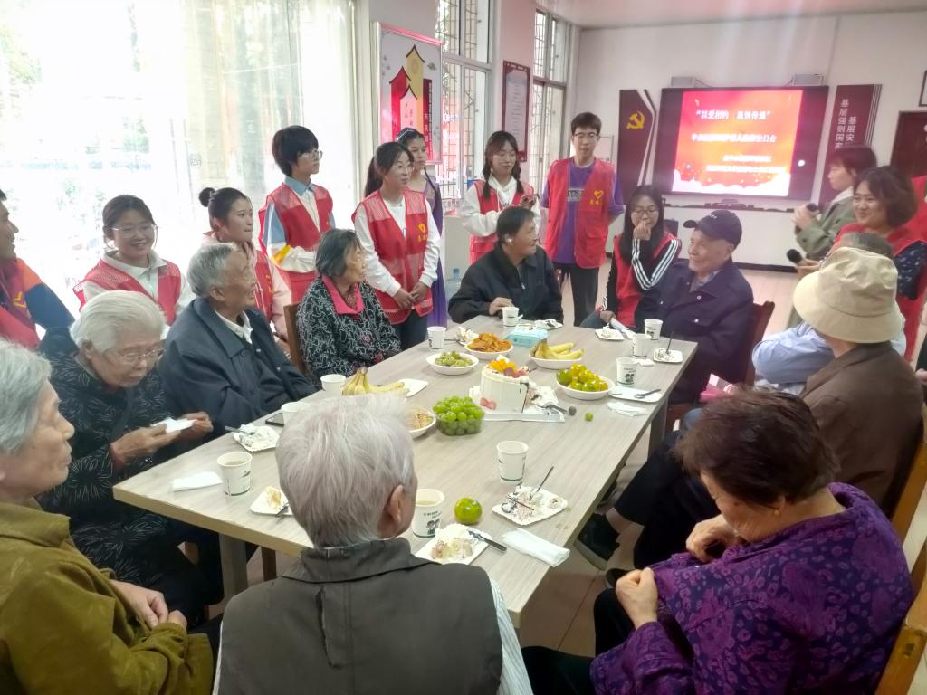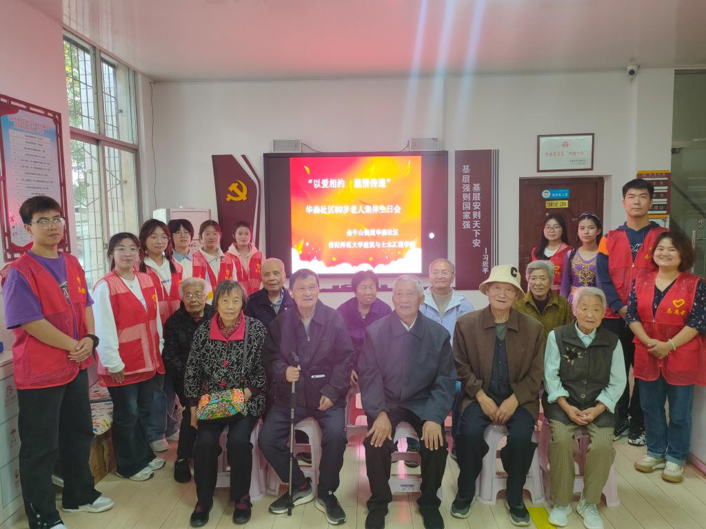 为展现当代大学生敬老、爱老的优秀品格,根据学校支部联支部工作安排,10月13日下午,金年会jinnianhuicom师生共赴华森社区开展“以爱相约,温情传递”志愿服务活动,为社区80岁以上老人过集体生日。学院教师、学生党员代表11人、社区工作人员、10位老人参加活动。