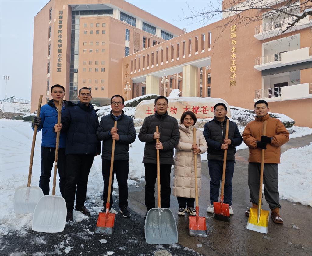 近期,我市遭遇大范围低温雨雪冰冻天气,给大家的生产生活带来不利影响。2月5日,金年会jinnianhuicom组建“党员应急志愿服务队”,在学院党委号召下,两个教师党支部的在信教师踊跃报名,党支部书记、教工党员和入党积极分子一行7人前往“支部连支部”对接社区-华森社区除雪,保障路面畅通,方便社区居民出行。