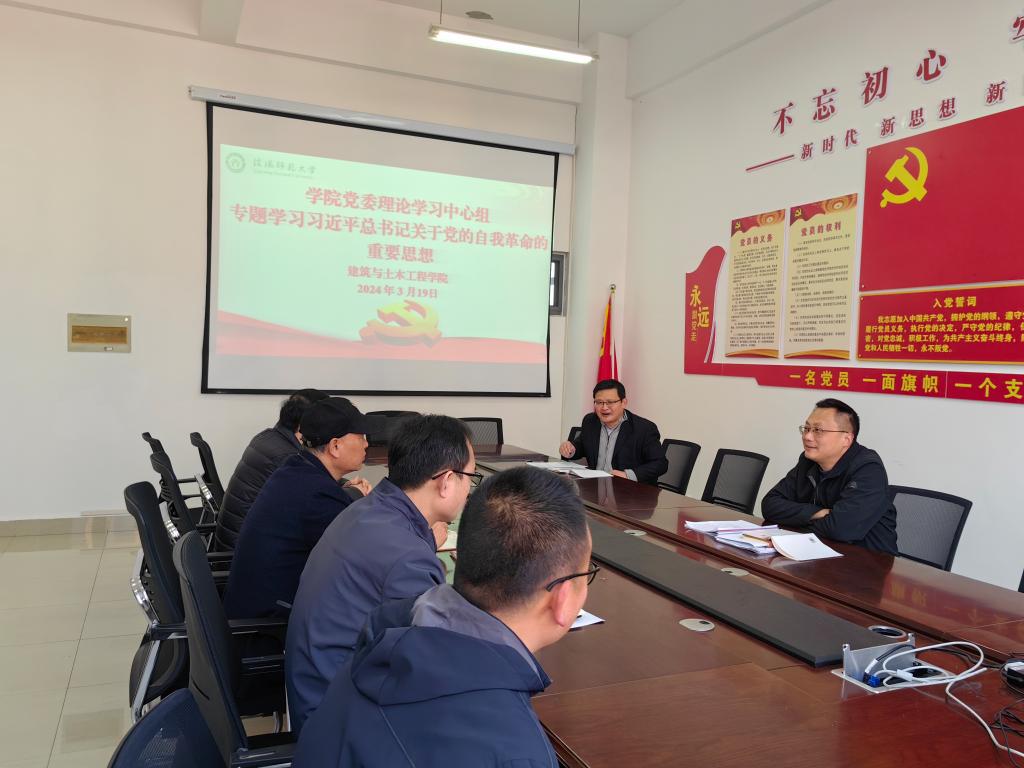3月19日,金年会jinnianhuicom党委理论学习中心组召开专题学习会议,深入学习贯彻习近平总书记关于党的自我革命的重要思想,集体学习新修订的《中国共产党纪律处分条例》(以下简称《条例》)。学院党委书记方明科主持会议,全体党委理论学习中心组成员参加学习研讨。