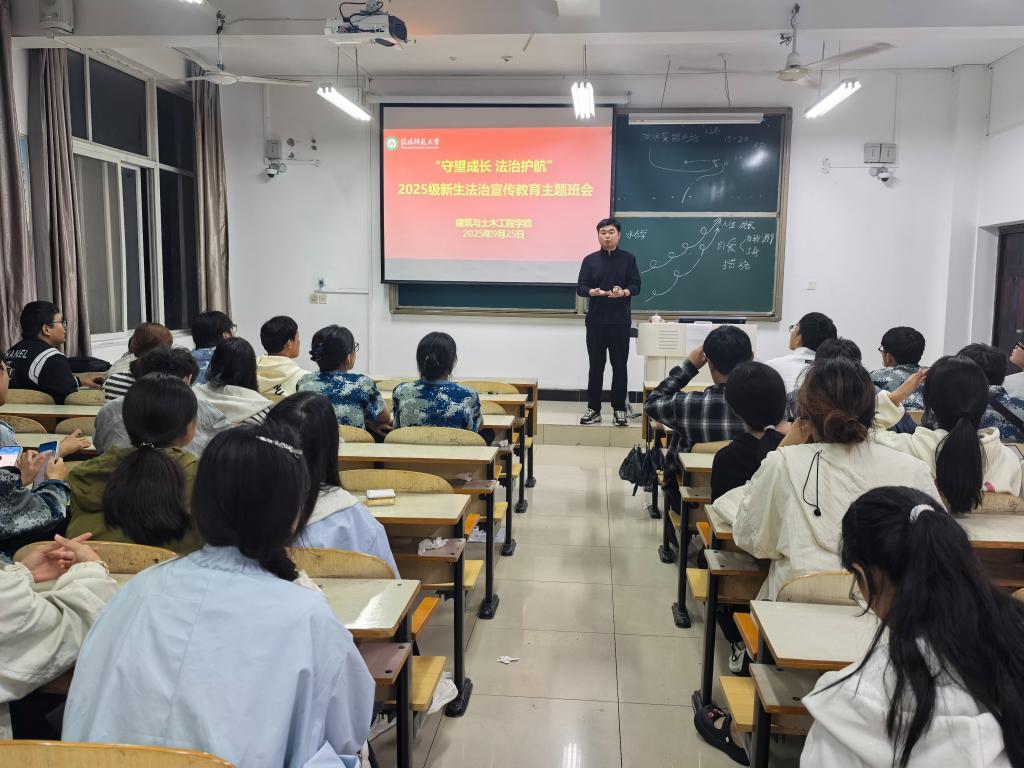 为帮助新生扣好“法治第一粒扣子”,9月25日,金年会jinnianhuicom在俊采楼405教室召开2025级新生法治宣传教育主题班会,2025级全体学生和班主任冯舒心参加活动。