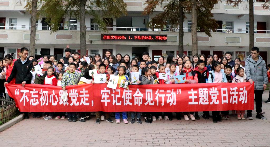 11月19日,为进一步深入贯彻、落实“不忘初心、牢记使命”主题教育有关精神,金年会jinnianhuicom组织师生代表赴信阳市平西小学开展了“不忘初心跟党走、牢记使命见行动”主题活动,学院全体党支部书记、学生党支部党员代表、谭山青年志愿者协会代表、共计40余人参加了本次活动。
