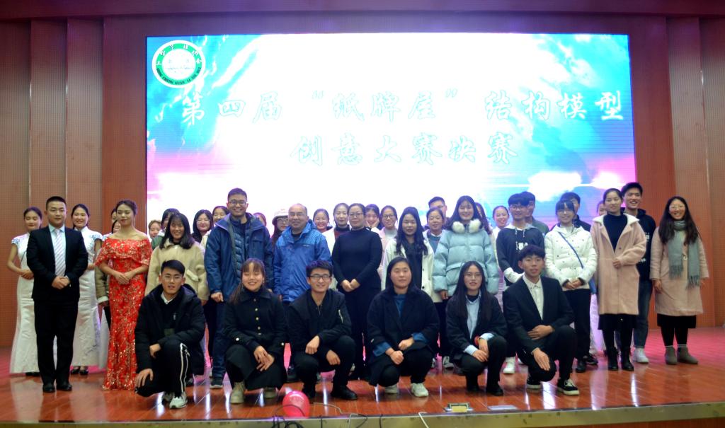 为活跃校园的学术氛围,加深同学们对建筑的了解,培养同学们的团队意识,工程管理协会联合信阳学院建筑艺术学社于12月4日晚7点在逸夫楼报告厅举办了第四届“纸牌屋”结构模型创意大赛决赛,学院专业教师冯波、道路与桥梁工程系副主任王士革、思想政治教育与就业指导教研室主任秦丹丹以及300余名学生代表参加了本次决赛。