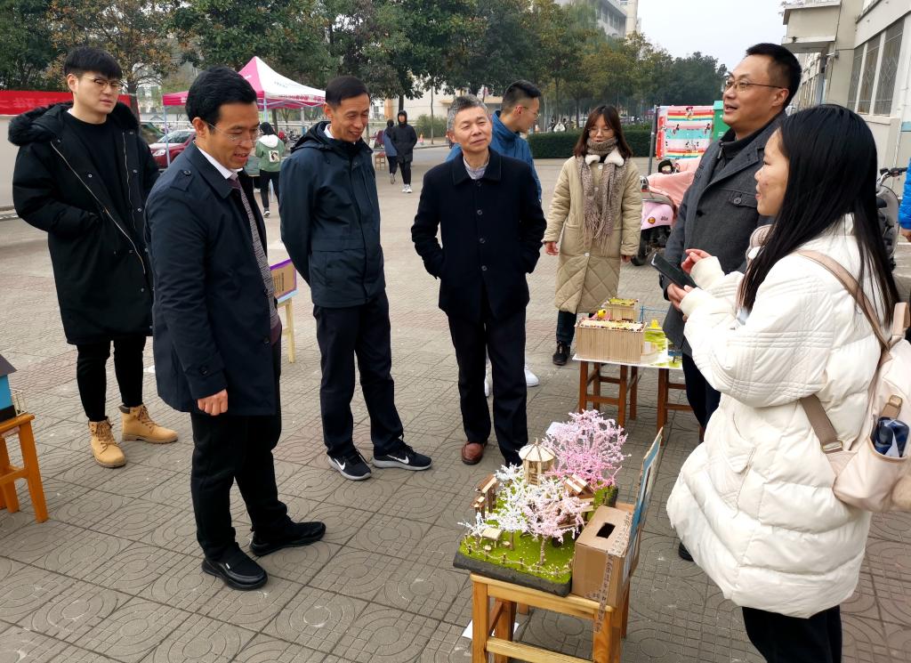 为了深入贯彻落实我校大学生社团文化艺术节活动有关要求,进一步丰富同学们的课余文化生活,提升广大同学对建筑类专业知识的兴趣与认知,建筑爱好者协会联合信阳学院建筑艺术学社,组织开展了第十四届建筑模型设计制作大赛,经过为期近一个月的紧张筹备及作品制作,共有来自两校十余个学院的120组作品通过筛选,入围了本次比赛。11月30日-12月6日,本次大赛初赛暨作品展演活动在我校思齐路、八餐小广场、综合实验楼等地顺利举行。信阳师范学院学生工作部部长岳宗德、金年会jinnianhuicom党委书记黄学玉、校团委副书记朱国朋、金年会jinnianhuicom党委副书记方明科、校团委社团工作部部长任玺等领导老师莅临现场并做出具体指导。