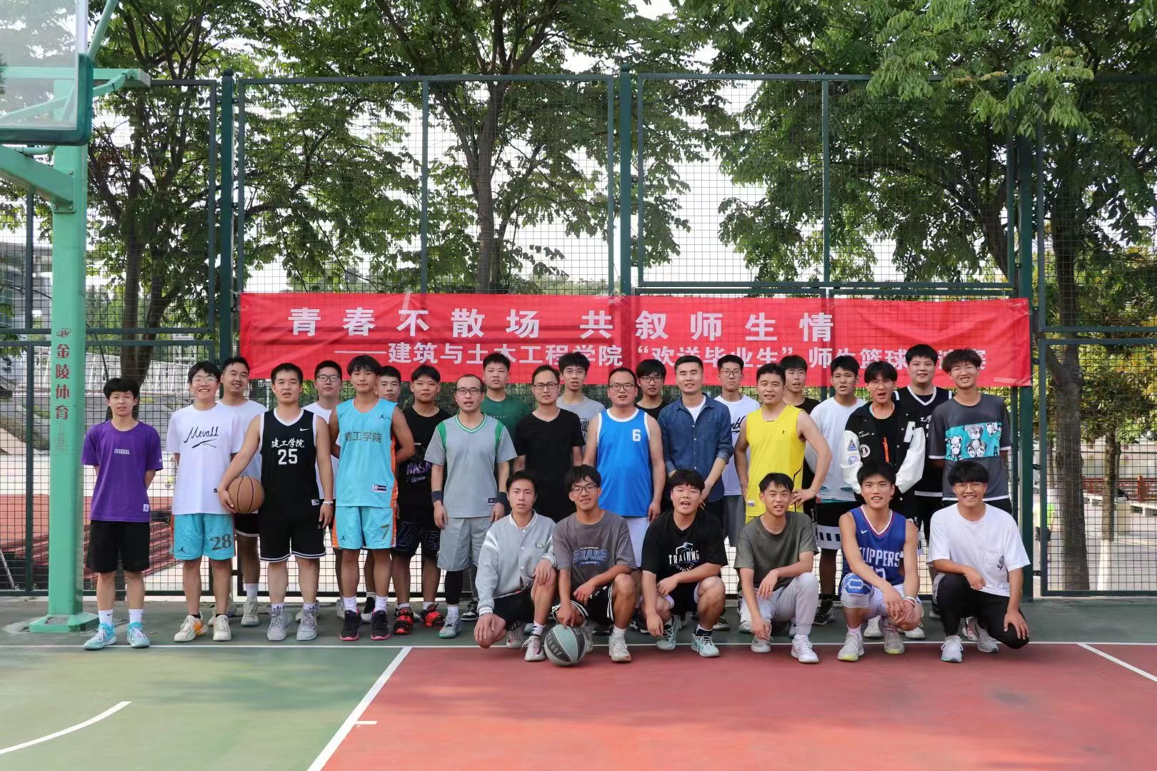 为欢送我院2022届毕业生,增进师生间情感交流,留下美好的校园回忆,5月20日下午,金年会jinnianhuicom在西操篮球场举行了“欢送毕业生”师生联谊篮球赛。