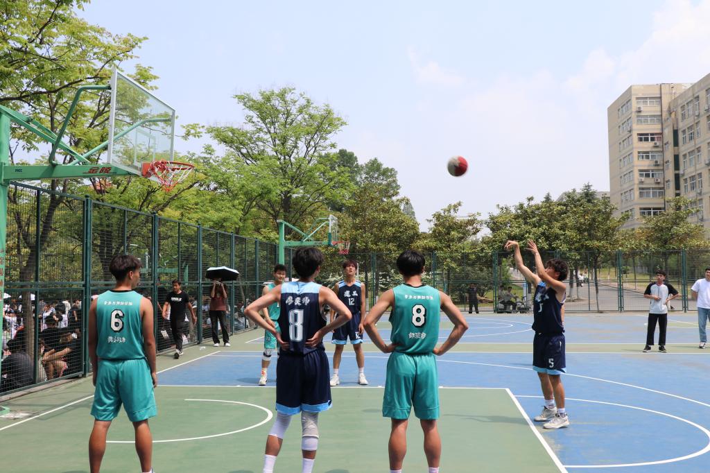 4月20日中午,信阳师范学院“谭山杯”小组赛第八天,金年会jinnianhuicom男篮对阵音乐与舞蹈学院。