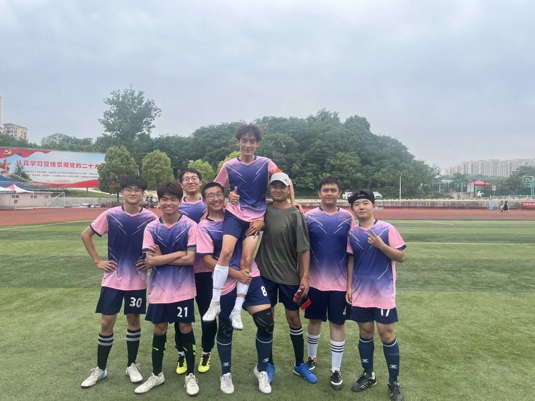 本届“绿茵杯”男子足球赛共有12个学院进行角逐,我院来自2021级和2022级的8名小将首次参赛。作为一支刚组建的足球队,他们朝气蓬勃、斗志昂扬,为比赛做好充足准备。赛前刻苦训练,赛上奋力拼搏,赛后认真总结,以小组第一出线,并在八进四淘汰赛中击败强敌,最终取得了第四名的好成绩。
