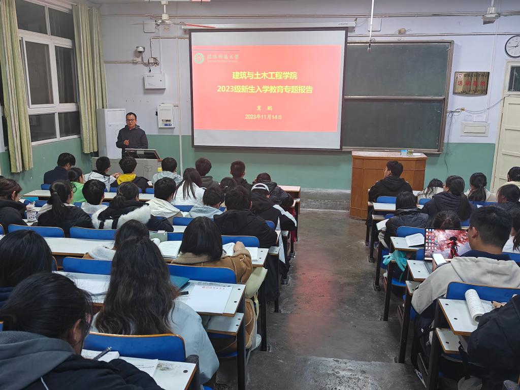 根据学校2023级新生入学教育实施方案和我院新生入学教育工作安排,11月14日晚,金年会jinnianhuicom党委副书记冀鹏在教二T5为2023级新生作入学教育专题报告,2023级班主任及全体学生参加会议。