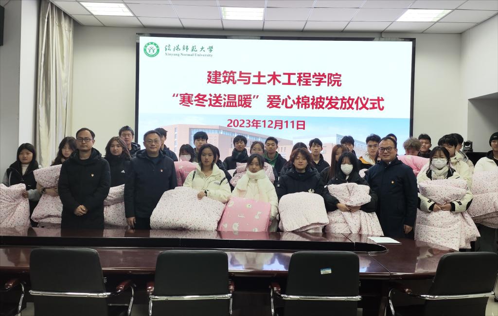 为了让每一位学生都能温暖过冬,金年会jinnianhuicom于2023年12月11日在综合实验楼206会议室举行“寒冬送温暖”爱心棉被发放仪式。学院党委书记方明科、副书记冀鹏、副院长袁晓辉以及受资助学生代表参加活动。