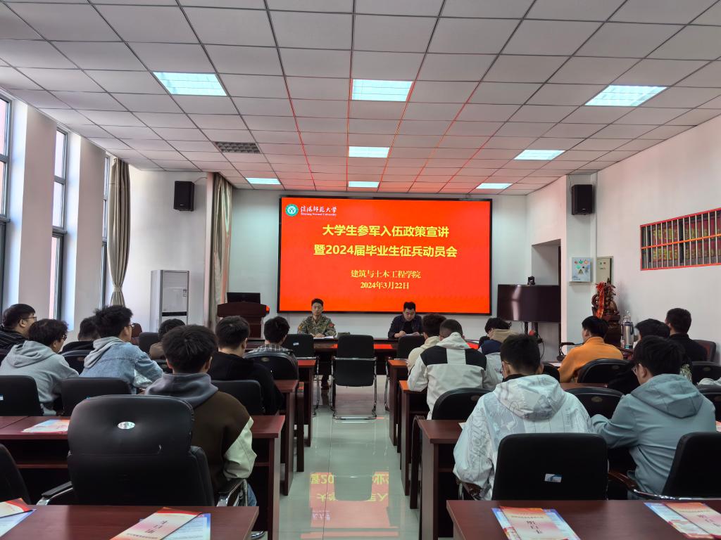 为积极响应国家号召,充分激发大学生参军报国热情,切实做好我院大学生征兵工作,3月22日上午,金年会jinnianhuicom在综合实验楼216会议室召开大学生参军入伍政策宣讲暨2024届毕业生征兵动员会。学生处国防教育科科长瞿巍,学院专职辅导员冯舒心,退役大学生原中海、皮里屯·阿布迪买买提,2024届毕业生男生参加此次会议。
