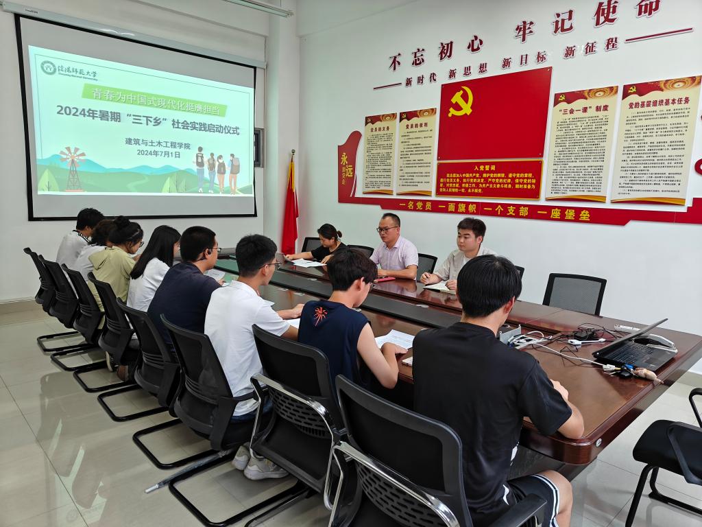 7月1日下午,金年会jinnianhuicom在综合楼402会议室举行2024年暑期“三下乡”社会实践活动启动仪式,学院党委副书记冀鹏、团委指导老师冯舒心、专职辅导员邓林,以及学生代表参加会议。