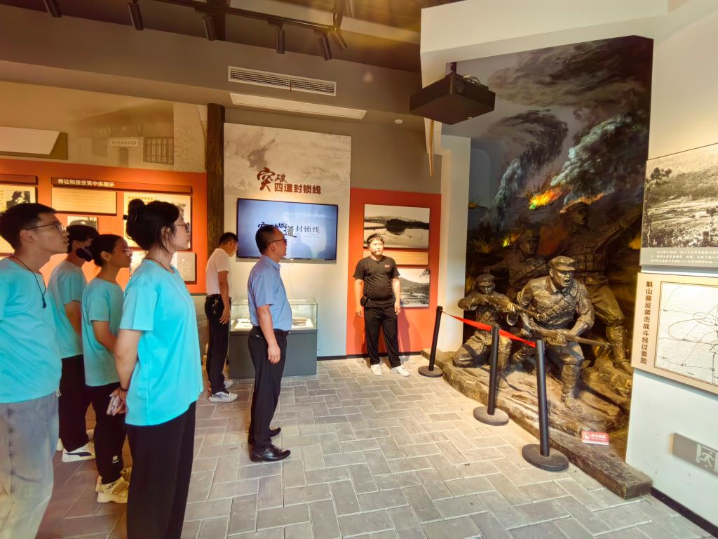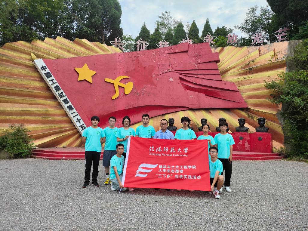 长征足迹忆英烈。在巍峨的花山寨会议旧址,实践团成员们肃立于纪念馆和烈士陵园前,深切缅怀革命先辈们的丰功伟绩,一张张生动的照片、一件件珍贵的文物,带领同学们穿越时空,亲历那段峥嵘岁月,深刻感受到了红二十五军的不屈意志和斗争精神。义务守护烈士五十余年的王茂贵老人向师生们讲述了战争时期艰苦的生活和革命的不易,他还说“你们正处于朝气蓬勃的年纪,要继承和弘扬革命精神,为祖国建设贡献力量”。