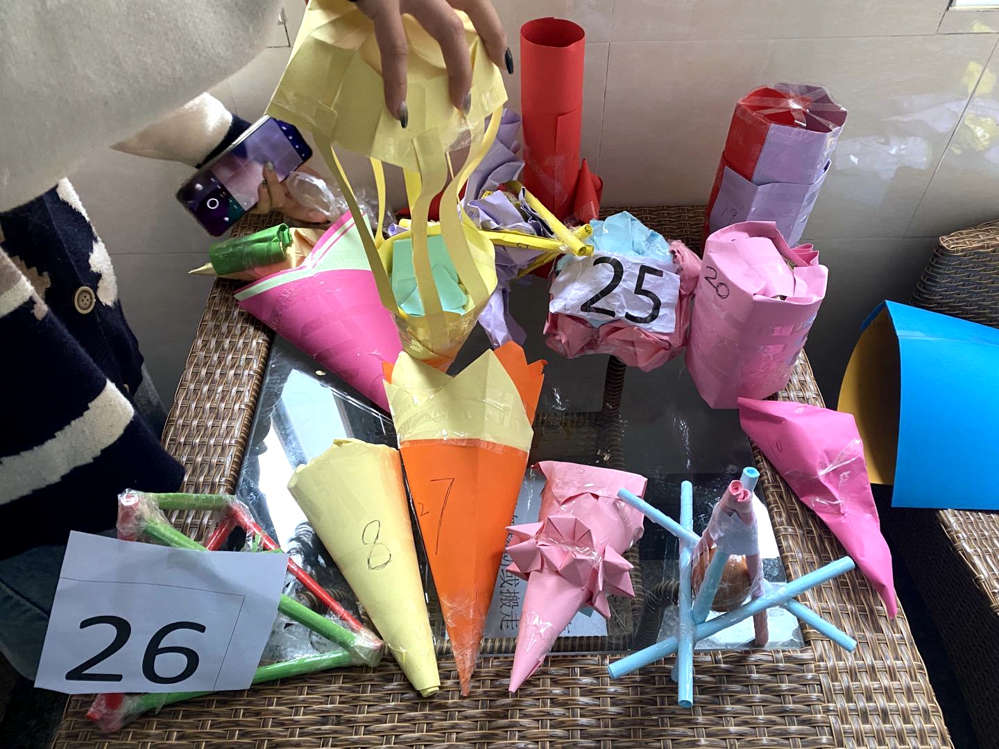 经过前期选拔,共有来自6个学院的30余组选手进入比赛环节,比赛分为专业组和业余组同时进行,活动过程中选手可以充分发挥想象,结合一定的结构模型和受力知识,利用卡纸和胶带建立模型,将鸡蛋放入模型内部,随后将装有鸡蛋的模型从8米高处自由下落,鸡蛋不被摔碎且重量最轻者获胜。活动开始后,各组选手积极思考,巧妙设计,结合自身专业知识与生活经验,用纸棒、胶带等简单的材料,制作出了伞形、三菱锥形、花束形等一件件构思巧妙的结构模型,最后经过自由落体实验,我校金年会jinnianhuicom蒋璐琪组等九组作品获得一等奖。