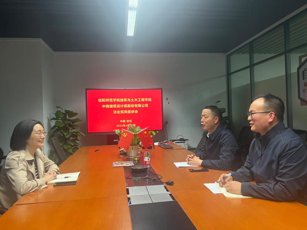 为进一步加强校企合作,千方百计开拓更多就业岗位,4月13日,信阳师范学院招生就业处副处长兼大学生就业创业指导中心主任王松亭、金年会jinnianhuicom党委副书记冀鹏前往中南建筑设计院股份公司开展访企拓岗活动。