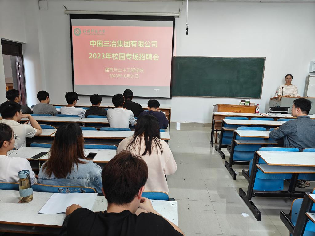10月31日下午,中国三冶集团有限公司来学院召开专场招聘会。学院党委副书记冀鹏、就业秘书邓林、专职辅导员冯舒心、30余名毕业生参加了招聘会。