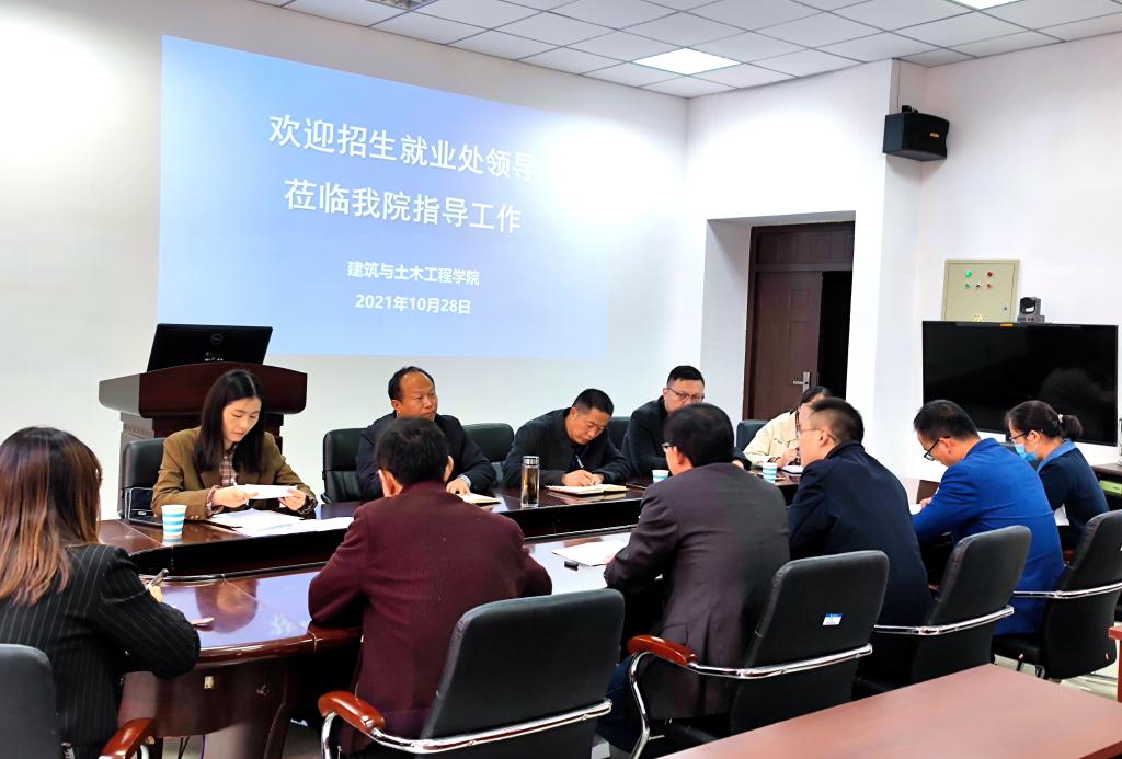赵明民处长认真听取了工作汇报,对我院招生就业工作给予了充分肯定。他对我院今后的招生就业工作提出了指导意见:一是希望我们以社会需求为导向,更加重视人才培养形成招生就业互动机制,把好进出口关;二是就业指导要全过程、全员化培养;三是重视就业工作全员化、全覆盖、全过程,全院教职工都参与;四是更加关注困难毕业生就业。