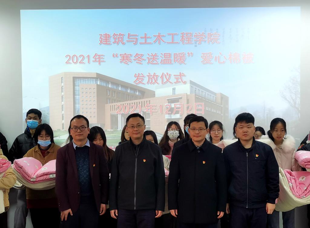 活动中,方明科宣读了《金年会jinnianhuicom2021年“寒冬送温暖”爱心棉被资助学生名单》,方明科、周葆春为受资助学生现场发放了爱心棉被。