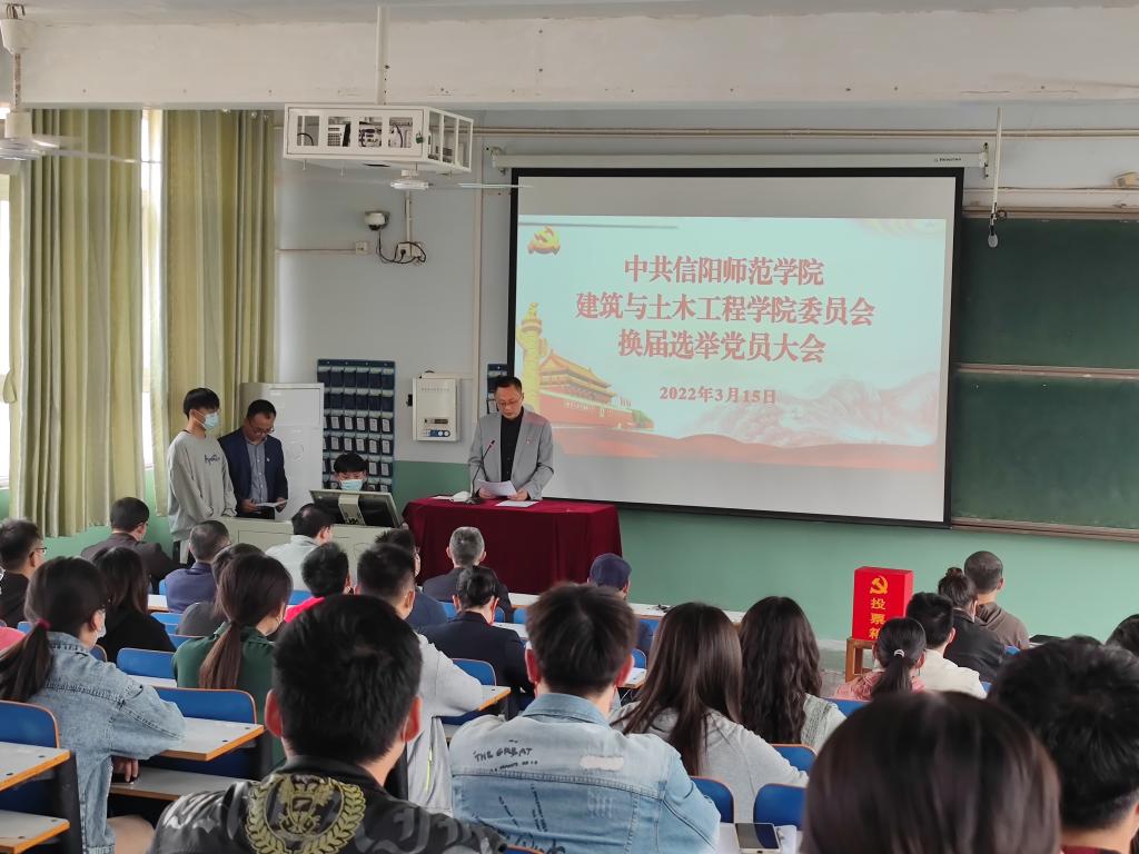 3月15日下午,中共信阳师范学院金年会jinnianhuicom委员会换届选举党员大会在教二楼T5教室顺利召开。学院全体正式党员参加了会议,部分预备党员代表和入党积极分子代表列席会议。会议由冀鹏同志主持。