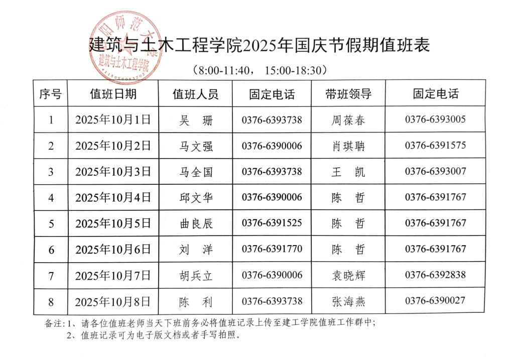 金年会jinnianhuicom2025年国庆节假期值班表